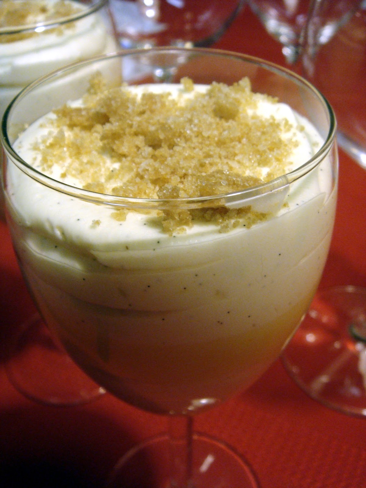 Dessert? Well that was a lemon curd with vanilla bean and cardamom mousse verrine. I didn't have any meyer lemons, so I used a combination of lemon juice/zest and orange juice/zest. As for the mousse, I substituted half a teaspoon of ground cardamom in place of the pods. To add texture, I added the crumble topping from my blueberry muffins. Just spread the crumble on a baking sheet and bake for about 10 minutes, just until golden.